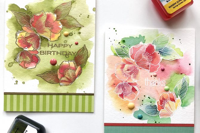 Hey, hello! Today is the Altenew Ultimate Liquid Watercolor – Brush Marker Refills release and blog hop and I have a number of sample cards to share with you! You have probably arrived here from the Altenew Card Blog where the hop begins, but if not, click on back and check out the watercolor marker refills inspiration, giveaway details and more!