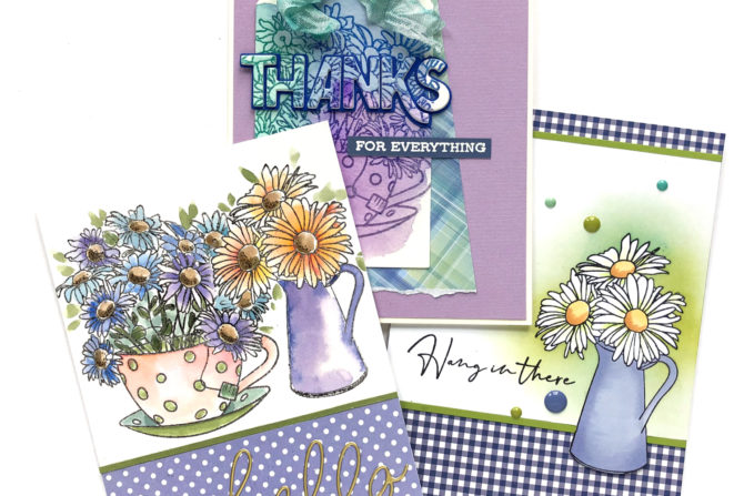 These are the three cards I made with the recently release Paint-A-Flower: Chamomile stamp set. You might remember the first cards I made with this stamp set over here? (I think maybe I like these more!?)