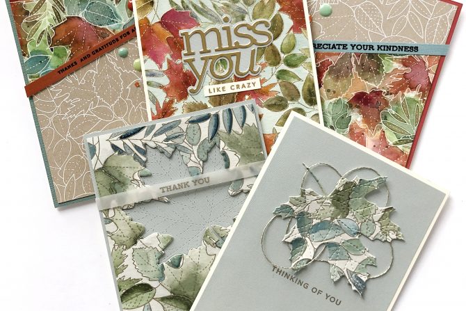 The last two cards today are my favorite and not just because they are done in my favorite color combo of blue and green! Well, ok yes, maybe the color combo is why they’re my favorite, but I also love the big Maple Leaf die cuts and inserts!