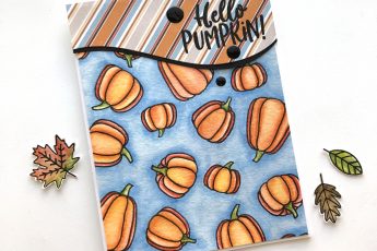 The “HELLO” greeting is from the Birds of the Woods Stamp Set and is heat set with white embossing powder.