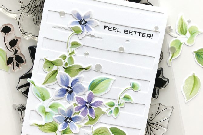 The dies I’m showcasing with today’s card are the Watercolor Stripes Cover Die and the stamps and dies from Floral Art.