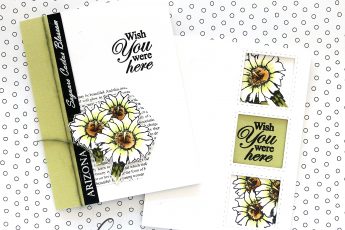 Card #1 uses the bouquet image in the stamp set, twice on one card panel, stamped on the right and left edges. I used the Altenew watercolor paper pad and heat embossed with white embossing powder.