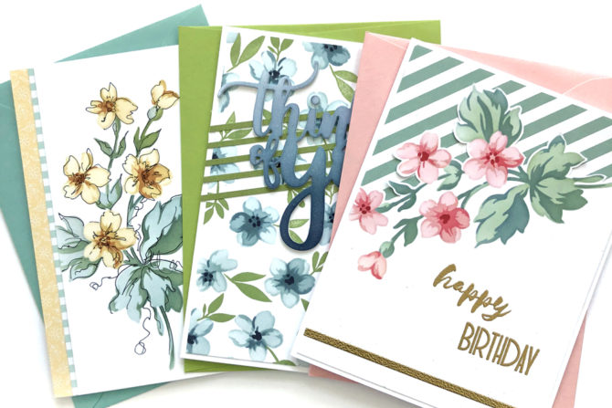 Hello, hi! I have a post up on the Altenew Card Blog today and wanted to share it with you here as well. I got to use the recently released (just yesterday actually) Hill Blossoms Layering Stencil set to create these three cards.