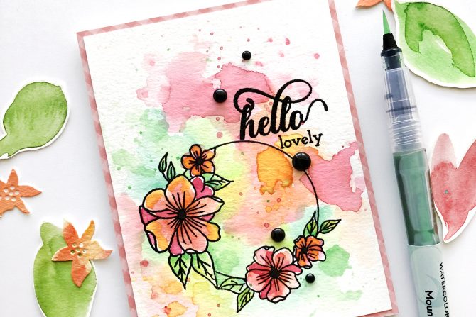I added a few black enamel dots and matted the watercolor cardstock onto a piece of coordinating patterned paper and adhered both to a cardstock card base.
