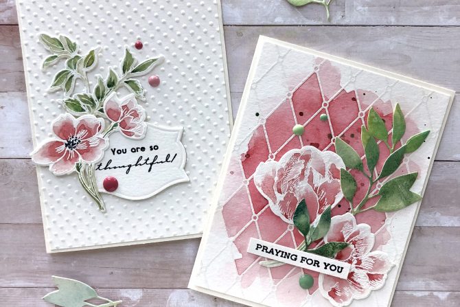Hello, hi! I’m up on the Altenew blog today with these two cards and wanted to share them here as well. I used the recently released Pen Sketched Flowers stamp and die sets to create these cards and used some simple techniques to achieve some big results!