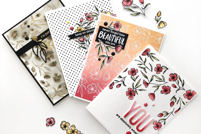 Hi, hello! I’m back today to show you some projects that I’m sharing on the Altenew Card Blog today, using a beautiful background stamp set called Delicate Flower Bed, from the Altenew April release. I love a good background stamp set but few are quite as versatile as this one!