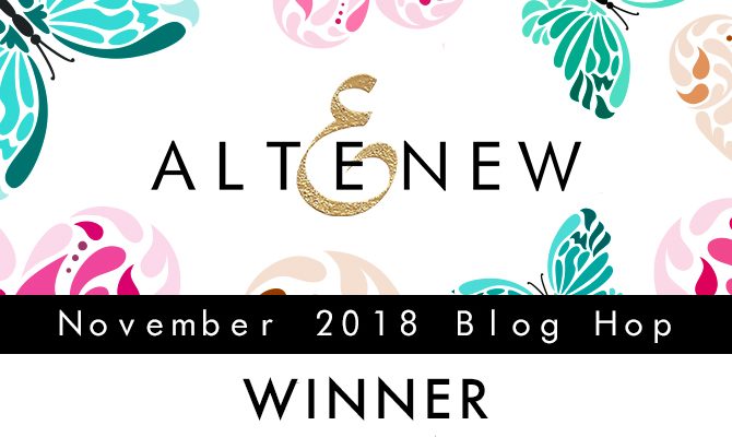 Hello friends! Welcome back again today! I’m announcing a winner of the recent Altenew Stencil/Ink Spray Release Blog Hop gift certificate. Thank you ALL for visiting my blog and leaving such lovely comments! I appreciate every one. Random Generator chose Eva’s comment to receive the $30 GC. Eva watch your email for instructions to redeem your prize.