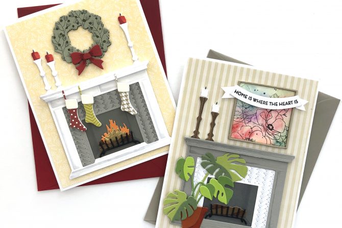 How cute are these die cut scenes right??? I used the Modern Fireplace and Mantel Decor – Winter die sets to make a Christmas card an then added a few other sets to make a fun homey card suitable for any season.