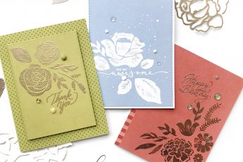 Both cards employ a die cut shadow box from the Pretty Pink Posh Storybook #2 and #6 dies, which I cut from heavy weight white cardstock and backed with foam adhesive strips.