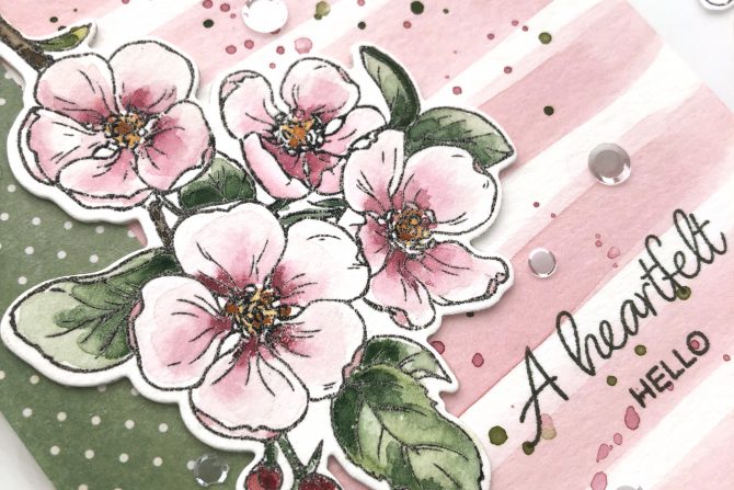 Next up is my card made using the Greenhouse Society stamp and die set for this month, called Blooming Branches.