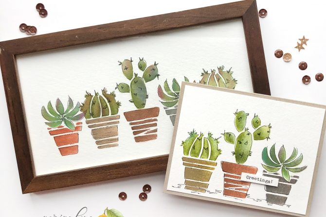Hi friends, I’m back today with a couple of projects I created for and am sharing on the Magenta Style blog. I used one of their stencils called Cactus Trio to create a card as well as a picture for a frame.