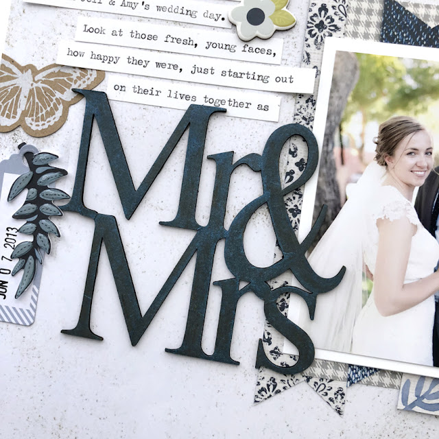 Last week we revealed a new set of Wedding Words that I designed for Love is in the Details, and while the chipboard and wedding photos were out, I just had to make another layout, even though this wedding was almost 5 years ago!