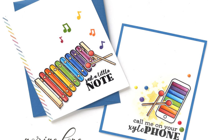 Today’s cards feature the Xylo Phone stamp set. There is a coordinating die set which I didn’t have, but sharp fussy scissors did the job.