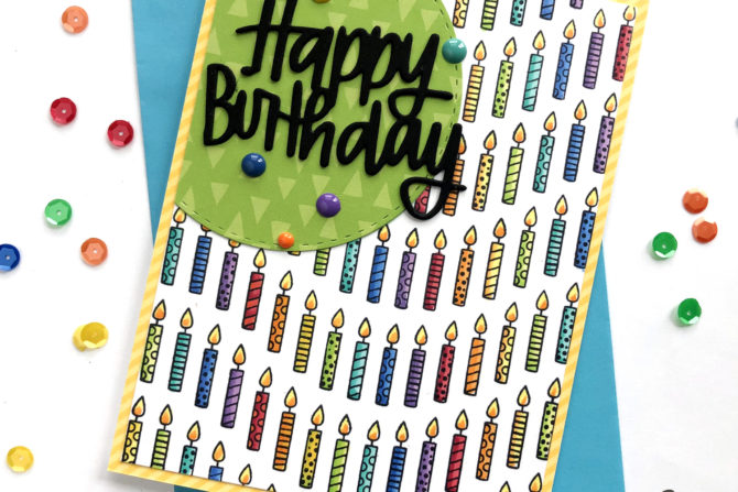 I die cut a bold “happy birthday” greeting twice from heavy black cardstock and stacked the layers to create a greeting with extra impact.