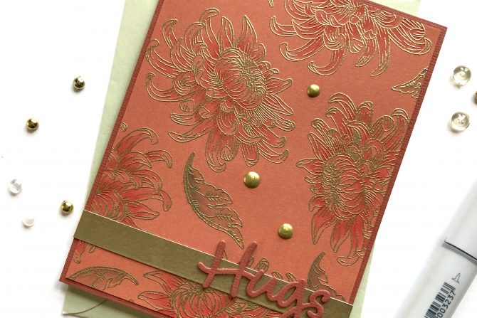 Hi, hey! As promised, I have a second card to share that I’ve made using the September Greenhouse Society Stamps and Dies. This month’s release is called Chrysanthemum and you first saw me use it here. Today’s card shows a different technique with the same stamp set.