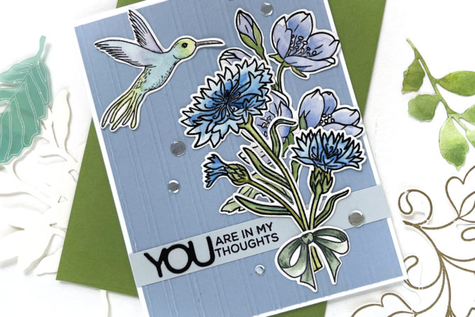 The Cornflower stamp and die set are part of the monthly subscription for the Greenhouse Society, and can be purchased without the subscription for a few dollars more. If you’re interested you can check it out here!