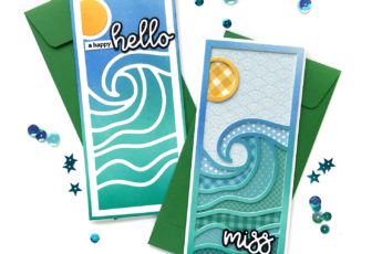 Once again, I added subtle color with Copic markers, adding shadows on the green strip as there weren’t as many leaves there to color. I used a holiday sentiment from a previous release, the Greenhouse Society Holly Stamp set. I chose not to add any extra embellishment to keep them more simple and classic.