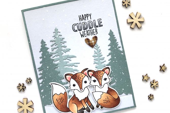 I’m using the December Animal House stamp and die set from Technique Tuesday again, called Felicity and Flynn the Foxes and they are a perfect pair to convey a snuggle-up message!