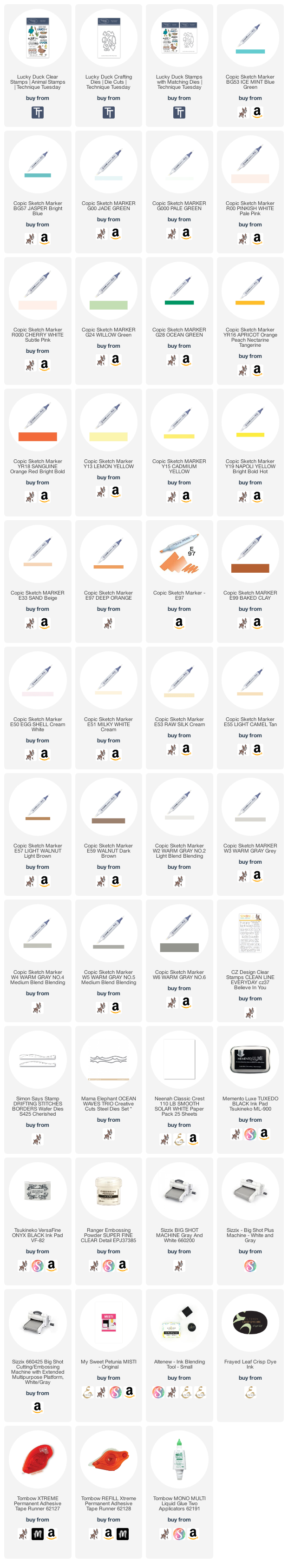 If you like puny, animal related stamp sets or floral stamps or are a memory keeper, be sure to check out the subscription options Technique Tuesday offers, especially if a 25% saving sounds good to you! Thanks for stopping by and I hope your day is just Ducky! (See what I did there?)