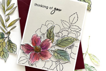 I stamped part of the moose image and part of the deer image onto Neenah solar white cardstock, with Memento Tuxedo Black ink and colored them with alcohol inks. I used a combination of Copics, Spectrum Noir and Altenew Artist Markers.