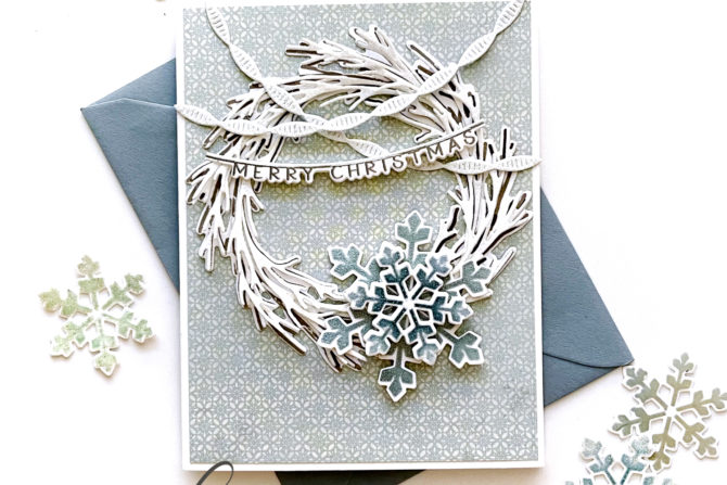 Hi, hello and welcome back! Today (10am EDT) The Greetery’s Leaf and Blade Collection goes live in the store and I just wanted to share with you, one last card I made. It’s actually a bit of a mishmash of old products along with one of the new ones, which is why I didn’t include it in yesterday’s reveal. I LOVE the Rustic Wreath stamp and dies and combined that set with a few of the other, older ones to make a Christmas card.