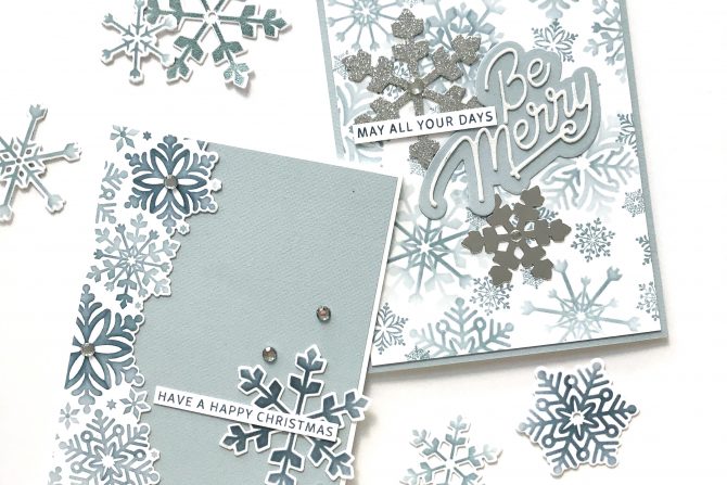 The next two cards are made using all the parts of the Snowflake Soiree stamps, stencils and dies sets.
