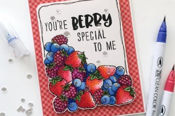 I stamped the roses arrangement using the main image in the Ella’s Garden Rose Bouquet stamp set, stamping onto watercolor paper with Versamark Embossing Ink and heat setting with white embossing powder. It’s a look I love and have been doing more of lately – the white embossing with color inside the lines and out.